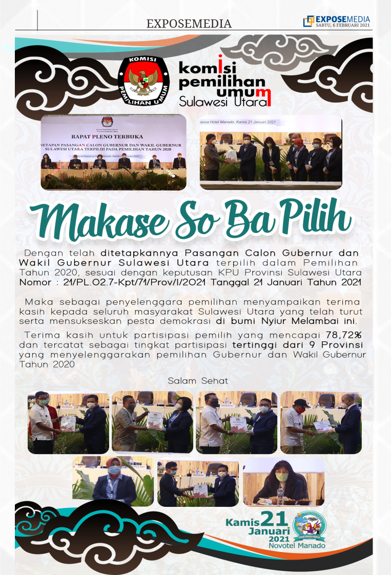 Edisi Sabtu, 6 Februari 2021exposemediaFebruari 6, 2021Februari 11, 2021Advertorial Baca Juga: Pemuda Muslim Sulut Gelar Buka Puasa dan Berbagi Bersama Warga Manado Berita TerkaitEdisi Minggu, 7 Februari 2021Edisi Rabu, 3 Februari 2021Edisi Senin, 25 Januari 2021Edisi Senin, 11 Januari 2021Edisi Kamis, 26 November 2020Edisi Selasa, 10 November 2020Edisi Senin, 9 November 2020Edisi Sabtu, 7 November 2020Jangan LewatkanKPU SULUT UCAPKAN SELAMAT DAN SUKSES ATAS PELANTIKAN YSK-VICTORY SEBAGAI GUBERNUR DAN WAKIL GUBERNUR SULUT, SERTA UCAPAN TERIMA KASIH ATAS KEPEMIMPINAN OD-SK KPU SULUT UMUMKAN PENERIMAAN MASUKAN DAN TANGGAPAN MASYARAKAT ATAS PASANGAN CALON GUBERNUR DAN WAKIL GUBERNUR SULUT PADA PEMILIHAN TAHUN 2024KPU MANADO UMUMKAN PENERIMAAN MASUKAN DAN TANGGAPAN TERHADAP PASLON WALIKOTA DAN WAKIL WALIKOTA MANADO PADA PEMILIHAN TAHUN 2024Kepengurusan Perdana Pemuda Muslim Boltim Resmi DikukuhkanRaski Kukuhkan Pengurus Baru Pemuda Muslimin Indonesia Kotamobagu 2022-2027Pemuda Muslim Sulut Gelar Buka Puasa dan Berbagi Bersama Warga Manado