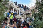 Foto-foto dan video menunjukkan kendaraan hancur di bawah bangunan dan orang-orang menggali reruntuhan untuk mencari korban yang selamat.