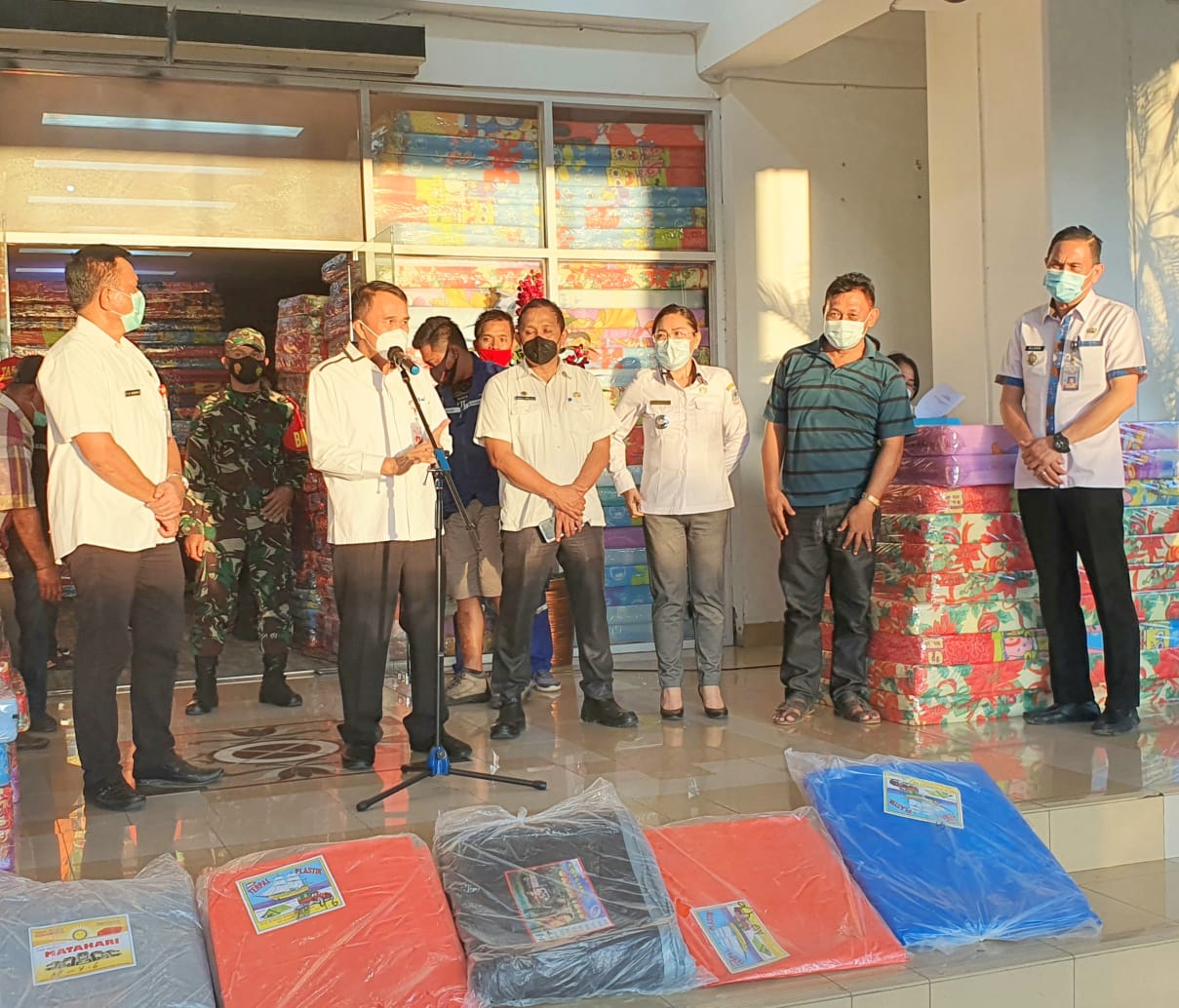 “Bantuan kasur dan terpal nantinya akan disalurkn ke warga melalui pihak kelurahan yang wilayahnya terdampak banjir dan tanah longsor baik yang mengalami kerusakan ringan maupun rusak berat,” tegasnya.
