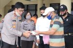 Setelah acara press conference, Kapolda Sulut Irjen Pol Drs. Royke Lumowa, MM menyerahkan babuk berupa mobil dan kunci mobil kepada pemilik/korban. (humas/*)